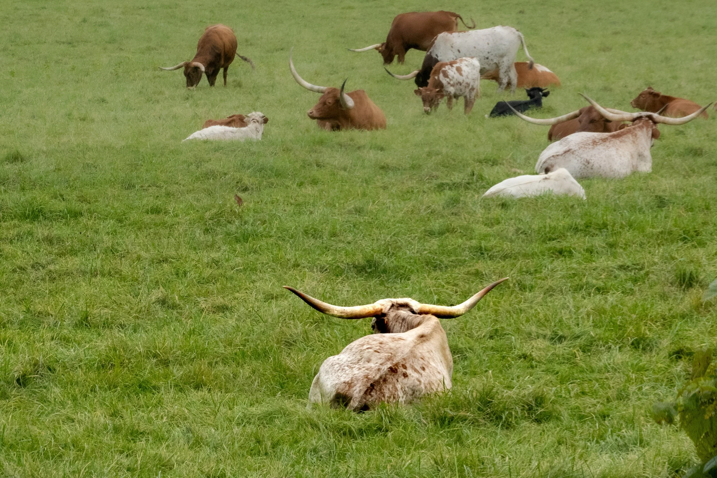 While we see lots of cows biking in the northeast, I have rarely seen longhorn cattle.