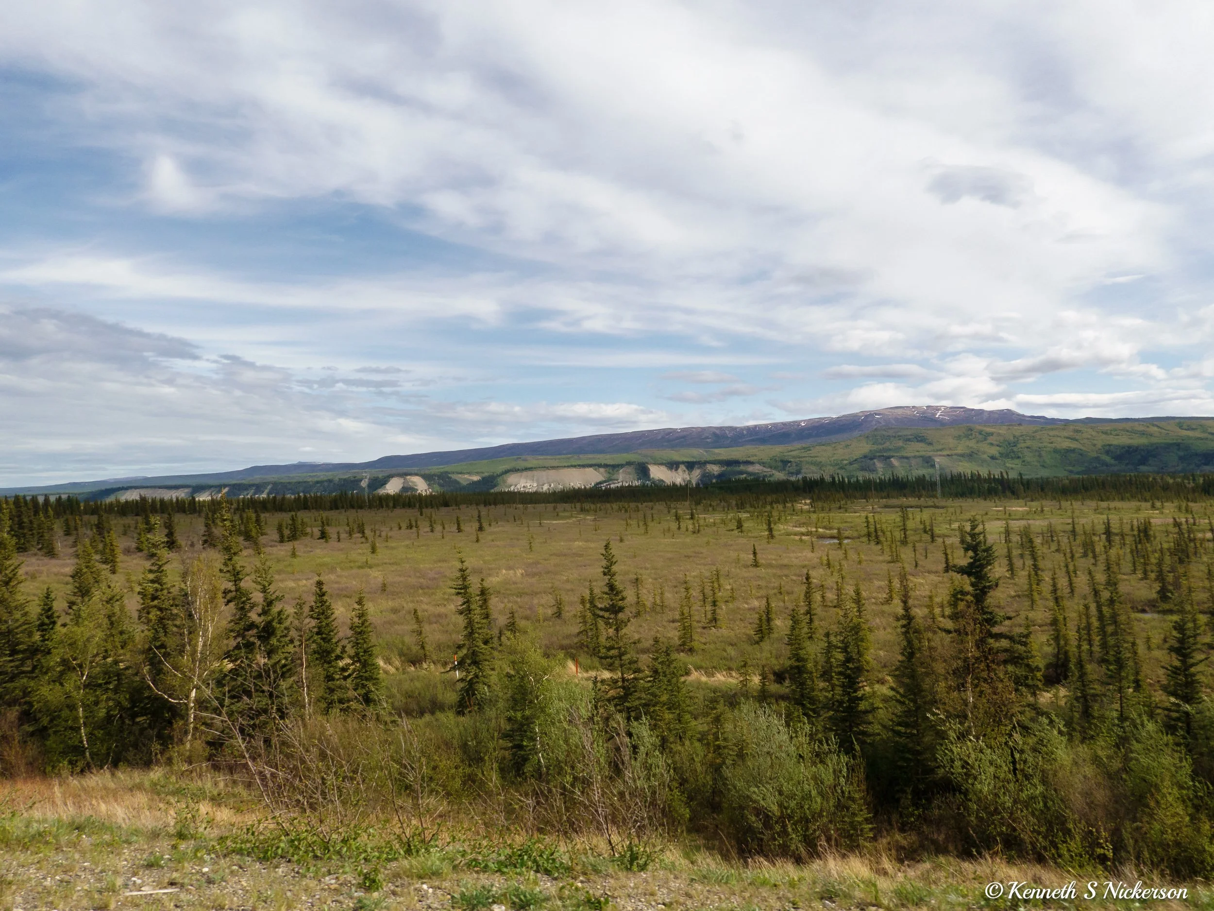 At about the 12 mile mark, we got to the main entrance to Denali National Park. We did not enter the park, but continued north towards Fairbanks skirting the eastern edge of the park. Yesterday was the day when we could have had views of Mt. Denali, but with the low clouds, it was not possible.