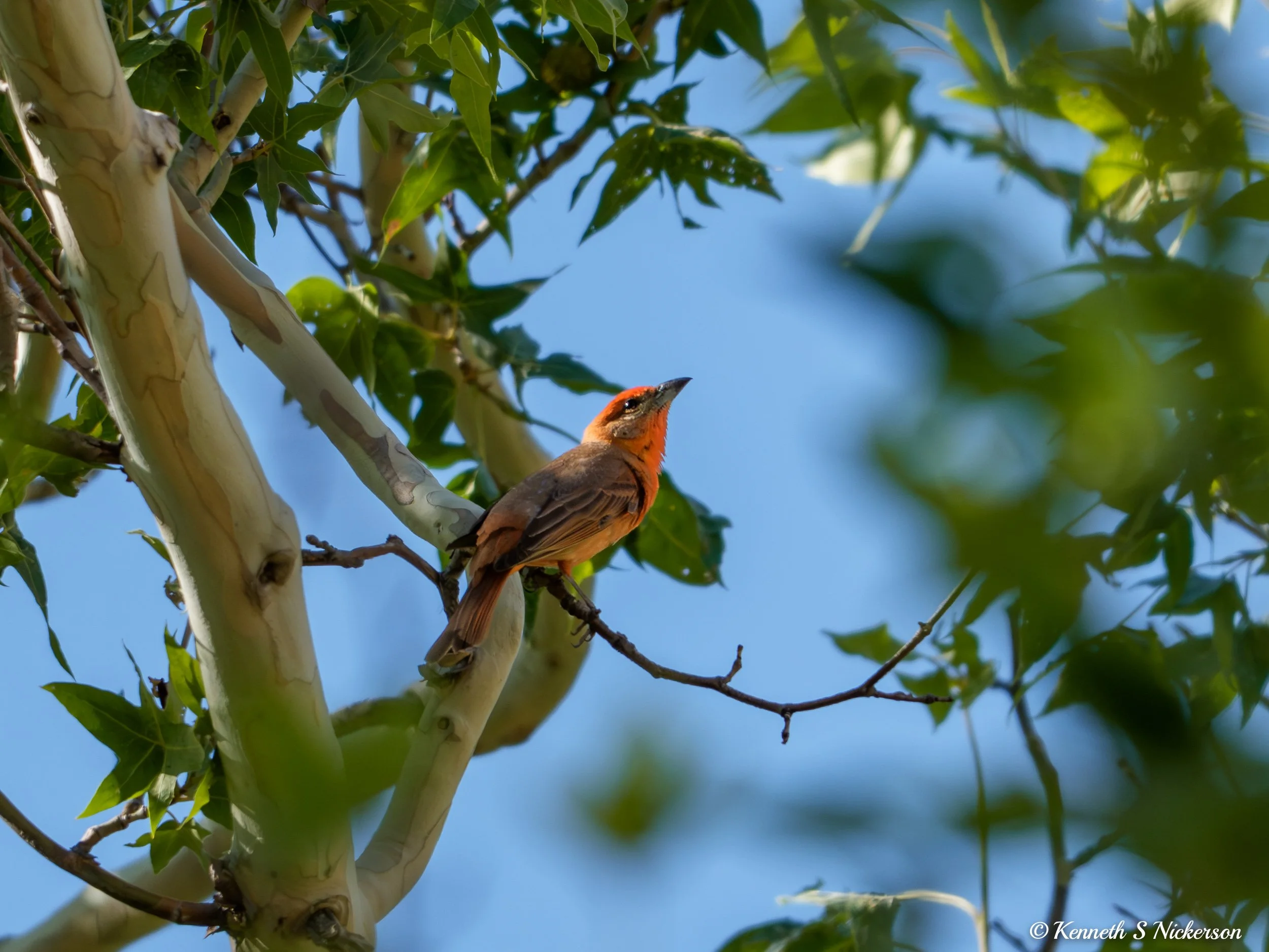 In my last post, I had a photo of a male Summer Tanager. This is a male Hepatic Tanager. The male Summer Tanager is red all over while the male Hepatic Tanager has the grayish back and cheek.