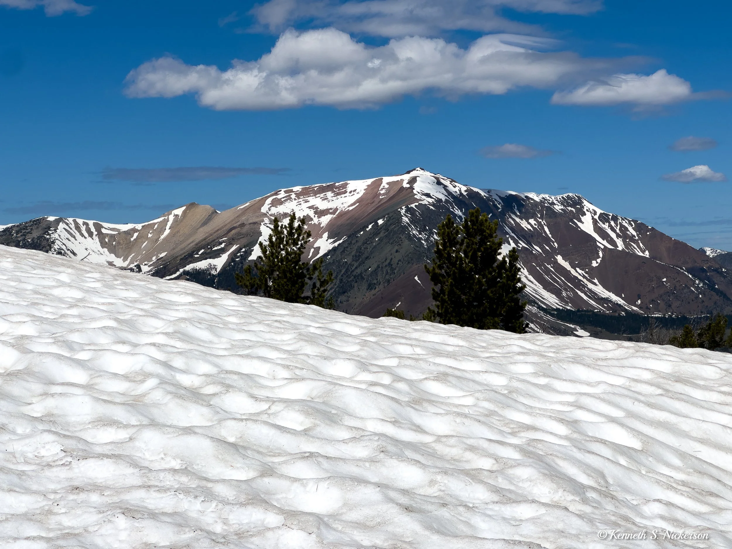 Today was a rest day. My big activity was to take the tram up to the top of Mount Howard. The elevation at the lodge is about 4400’. The peak of the mountain is 8200’. At that elevation, it still has scattered snow fields, especially on the north side. This is a view from the top looking south.