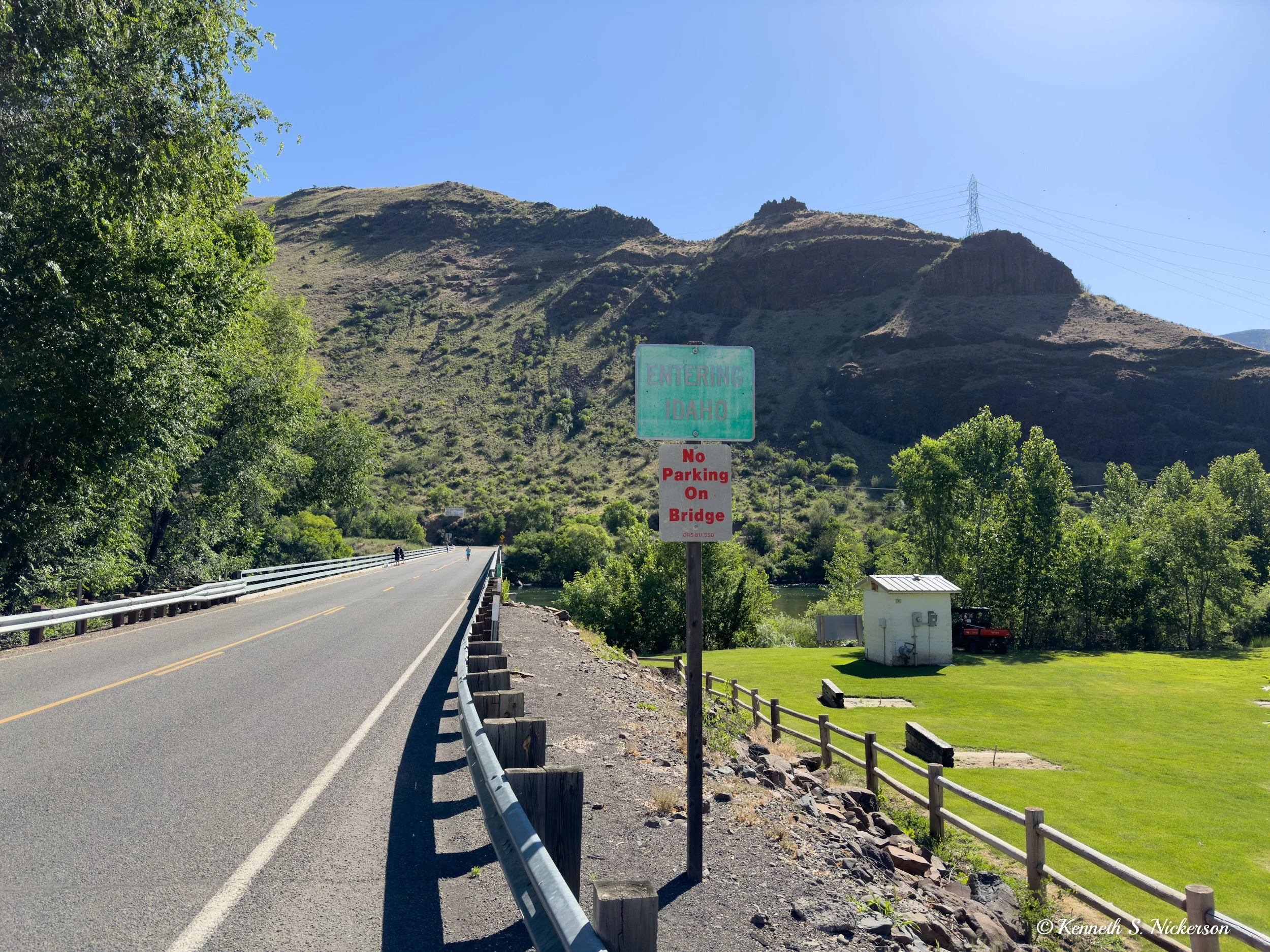 We arrived at the Snake River just below the Oxbow Dam, one of 3 dams in the Hells Canyon Hydroelectric Project. The Brownlee Dam is further up river which we will ride to tomorrow. Today, we biked to the Hells Canyon Dam about 23 miles down river. First we crossed over the river into Idaho.