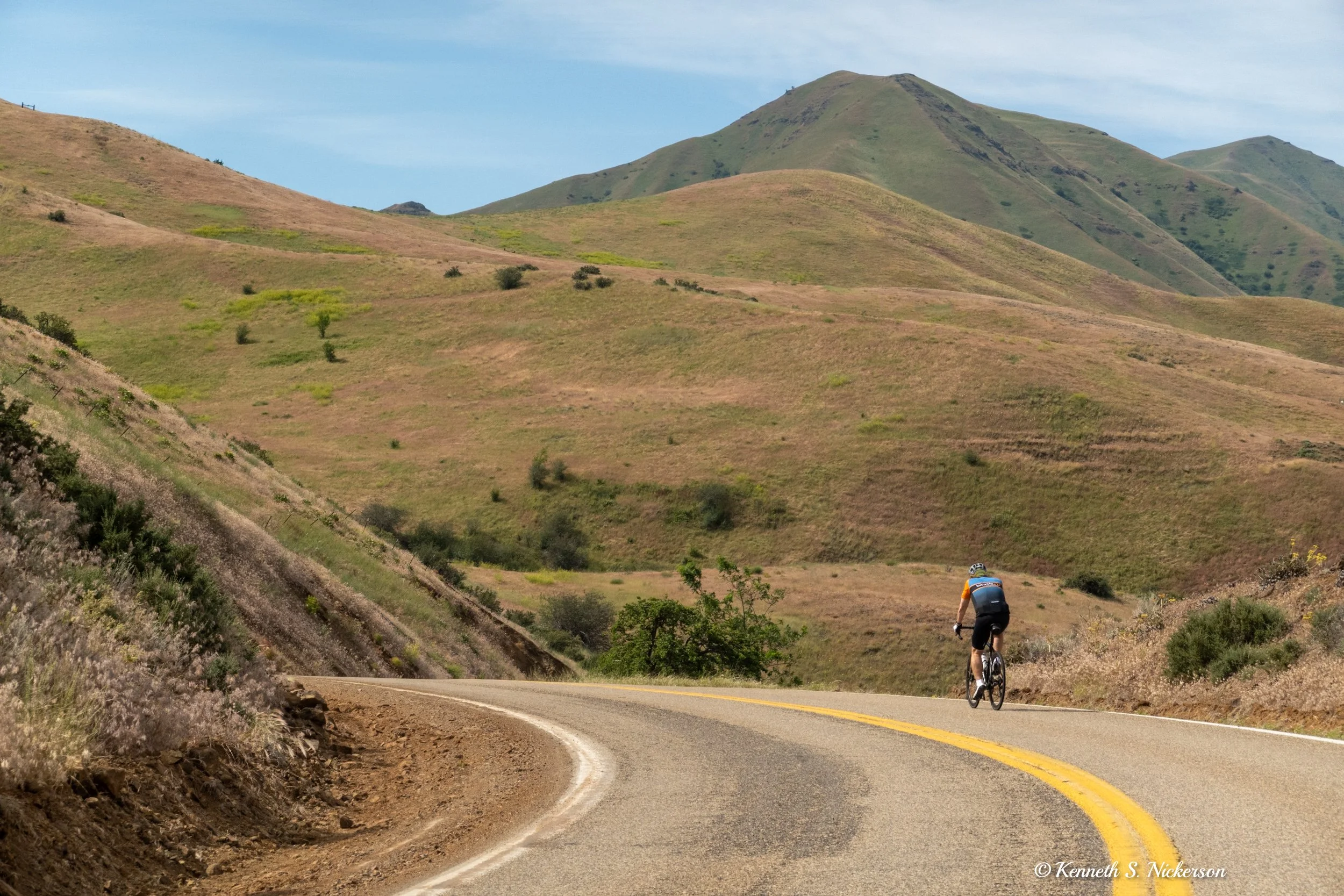 We started by bicycling up the Oregon side of the Snake River towards the Brownlee Dam, the final dam of the Hells Canyon Hydroelectric Project that I mentioned yesterday. Some bicycling trips are true point to point trips where one starts at point A and bikes every mile of the way to point B. An obvious example of this type was my 2019 cross country trip where I bicycled with Trek Travel from Santa Barbara CA to Myrtle Beach SC. In contrast, I would describe this trip as “We are going to bike lots of awesome roads between Bend and Boise.” One advantage of this type of approach is that the rides can be constructed to maximize beautiful roads and scenery without feeling constrained to get plot a route all the way from A to B. While the cross country trip had amazing beauty, there were many miles which weren’t nice back roads with stunning scenery. Sometimes, the miles were just about getting from here to there. The biking on this trip was overwhelmingly beautiful.