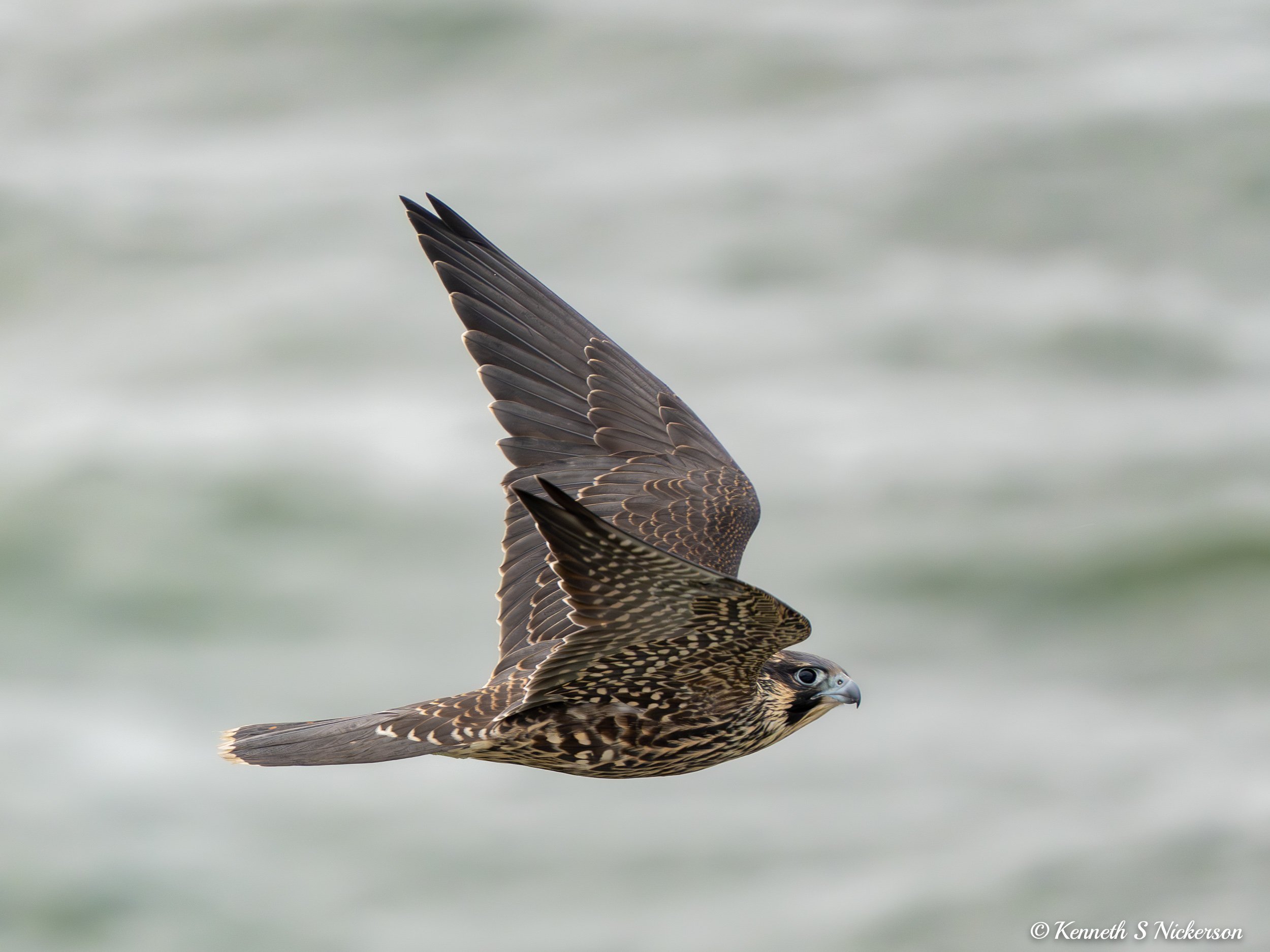 Saturday morning, the skies had clouded up and the winds were starting to rise as the first major Nor’easter of the season was predicted to hit on Sunday. I bicycled back to the ferry and rode it to NJ. Shortly before we arrived at the NJ ferry terminal, this Peregrine Falcon flew. This image is now my favorite Peregrine Falcon photo that I have taken. My previous photos have all been at much larger distance, so they do not have the detail of this photo. This falcon is also looking towards us rather than away from us which creates a more engaging image. The waves in the water provide a nice texture to the background. This was a great way to conclude my trip.