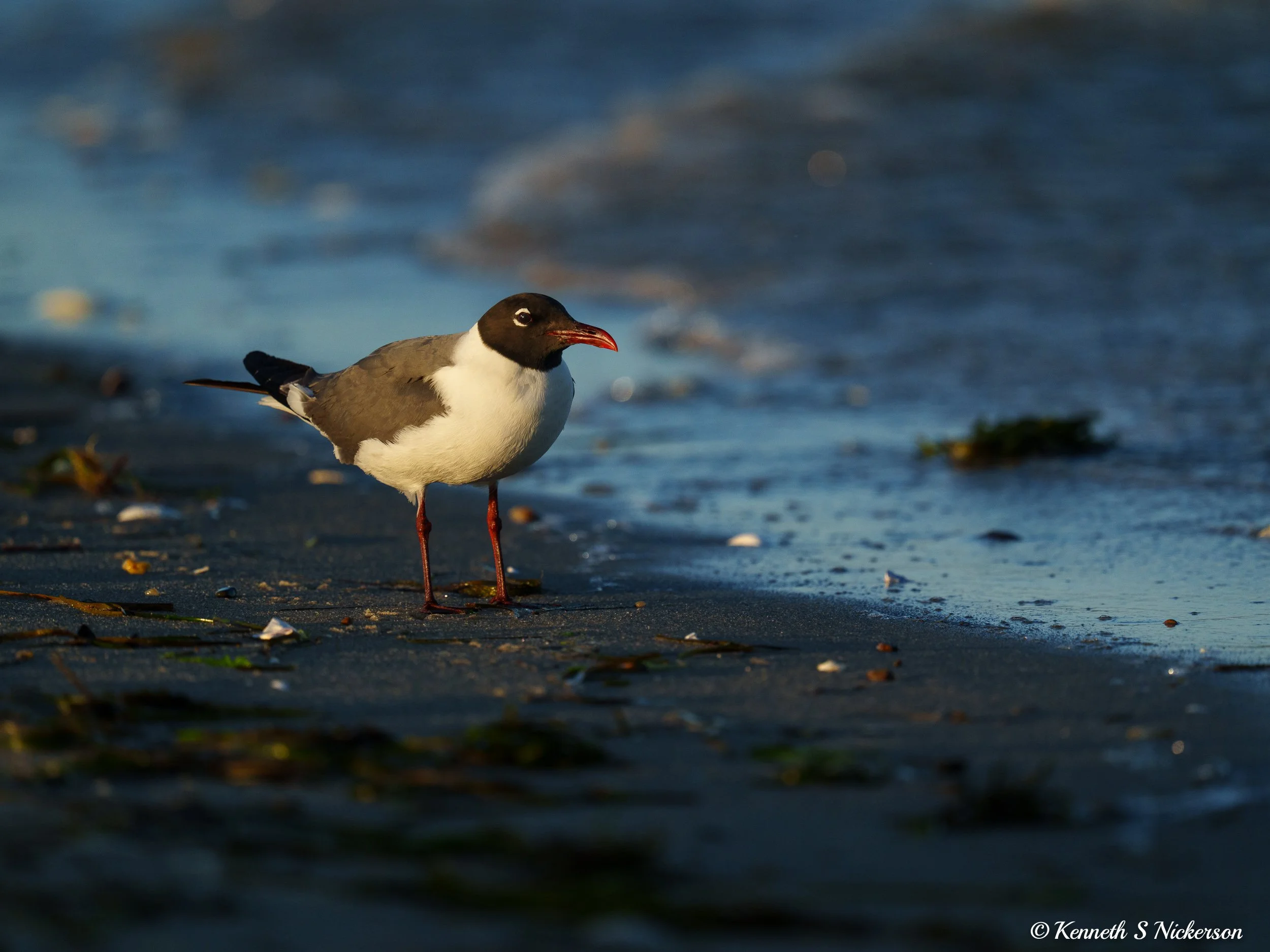 On shore, a Laughing Gull tried to decide if it needed to be concerned with me. When I am lying on the ground, most species of birds generally ignore me if I remain still. However, if I am pivoting my lens around, such as from looking out at the water to looking down the shore, I need to do so slowly or birds may start wandering away from me or even fly off.