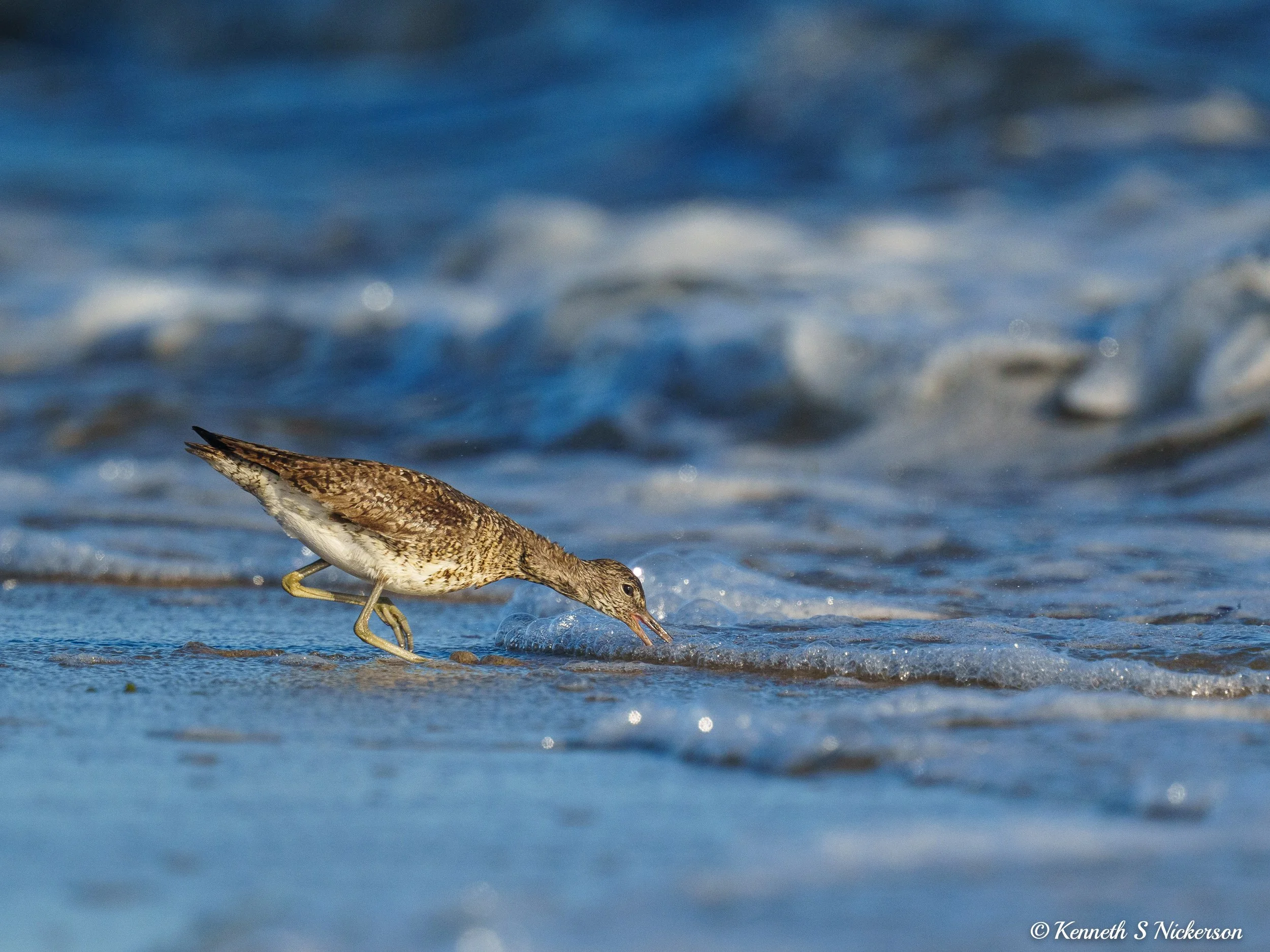 Off in the distance among the marsh grass, this Willet was screeching. The first photo of this post was also of a Willet as is my next image. Collectively, these three images showcase three Willets using completely different backgrounds, from the blue waves of the ocean, to the green marsh grasses, to the yellow of the setting sky. I have included all three to show how central the background is to bird photography.