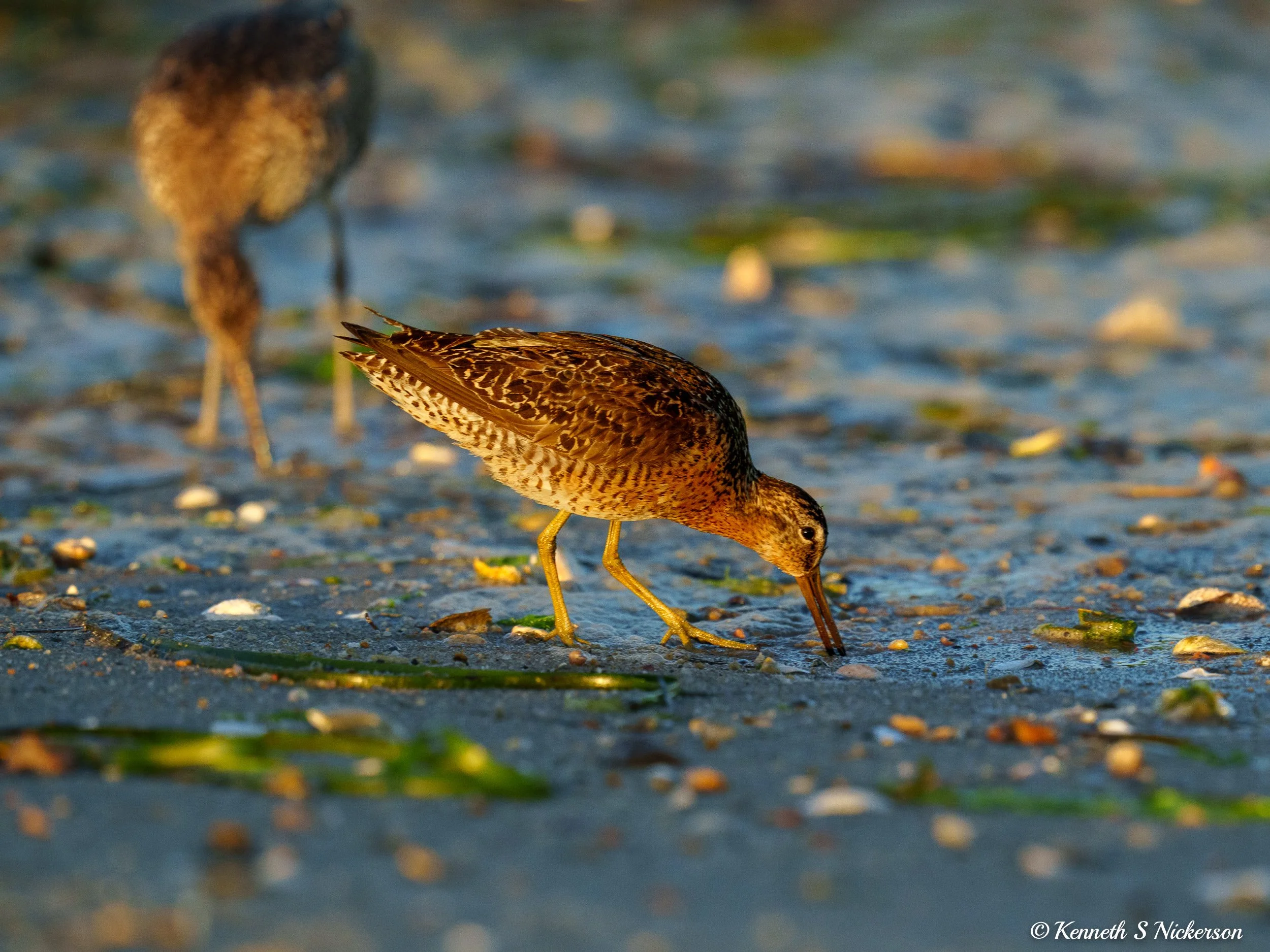 This Short-Billed Dowitcher was searching for its food in sand still moist from the slowly retreating tide.