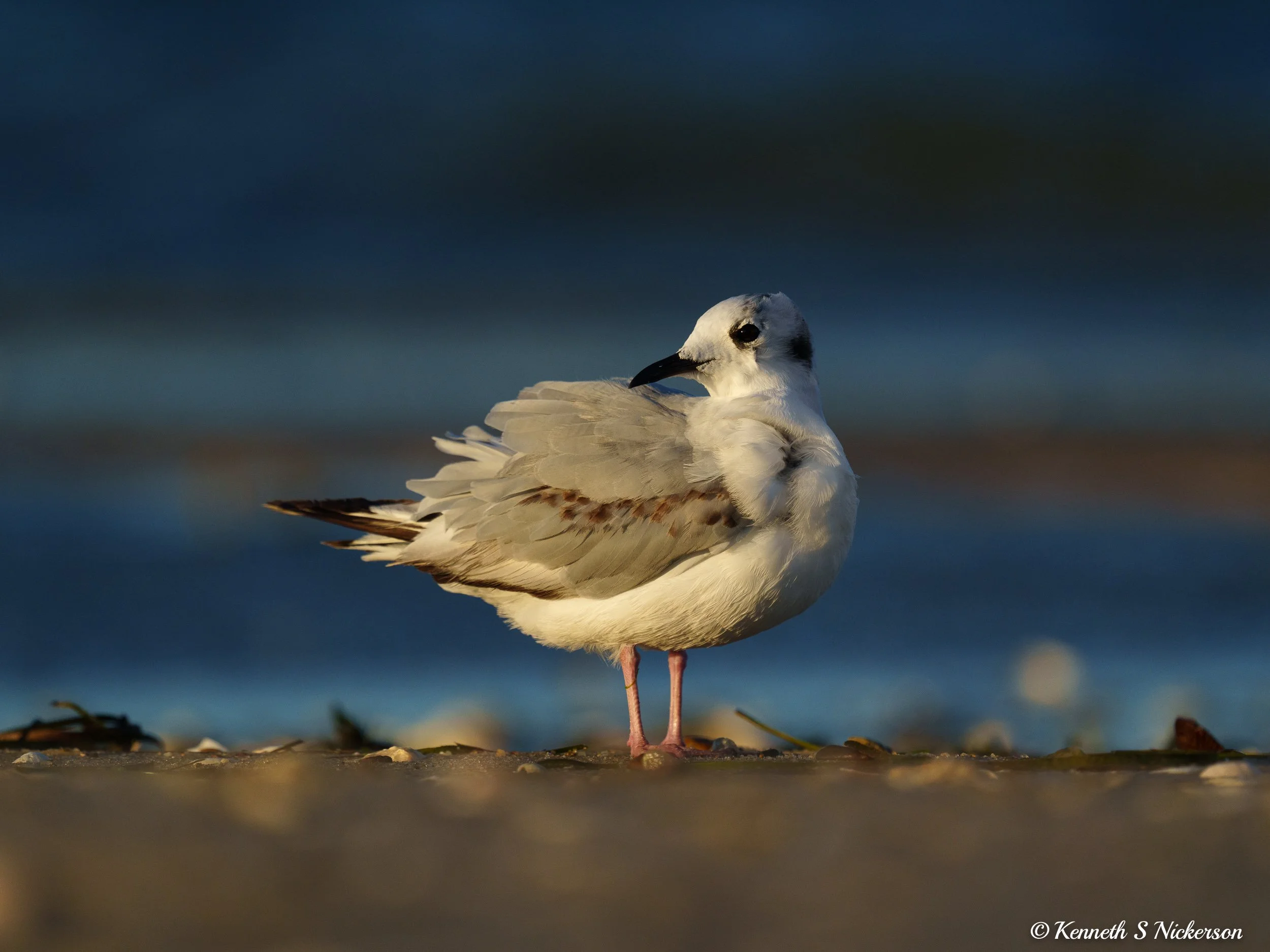 A bit further down the beach, a Bonaparte’s Gull’s feathers were puffed up in the wind.