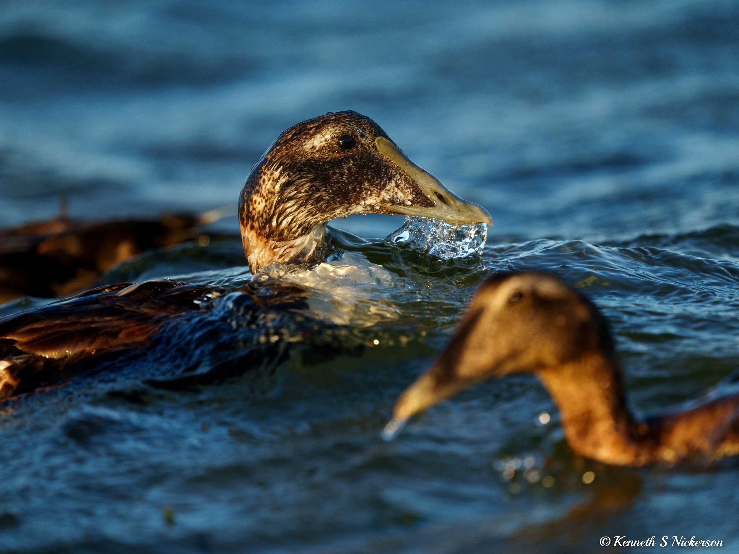 As I rounded the lighthouse and began walking along the inlet towards Stage Harbor, I entered more protected waters. In the shallows, I came across a collection of immature Common Eiders including this male and an out of focus female in the foreground.