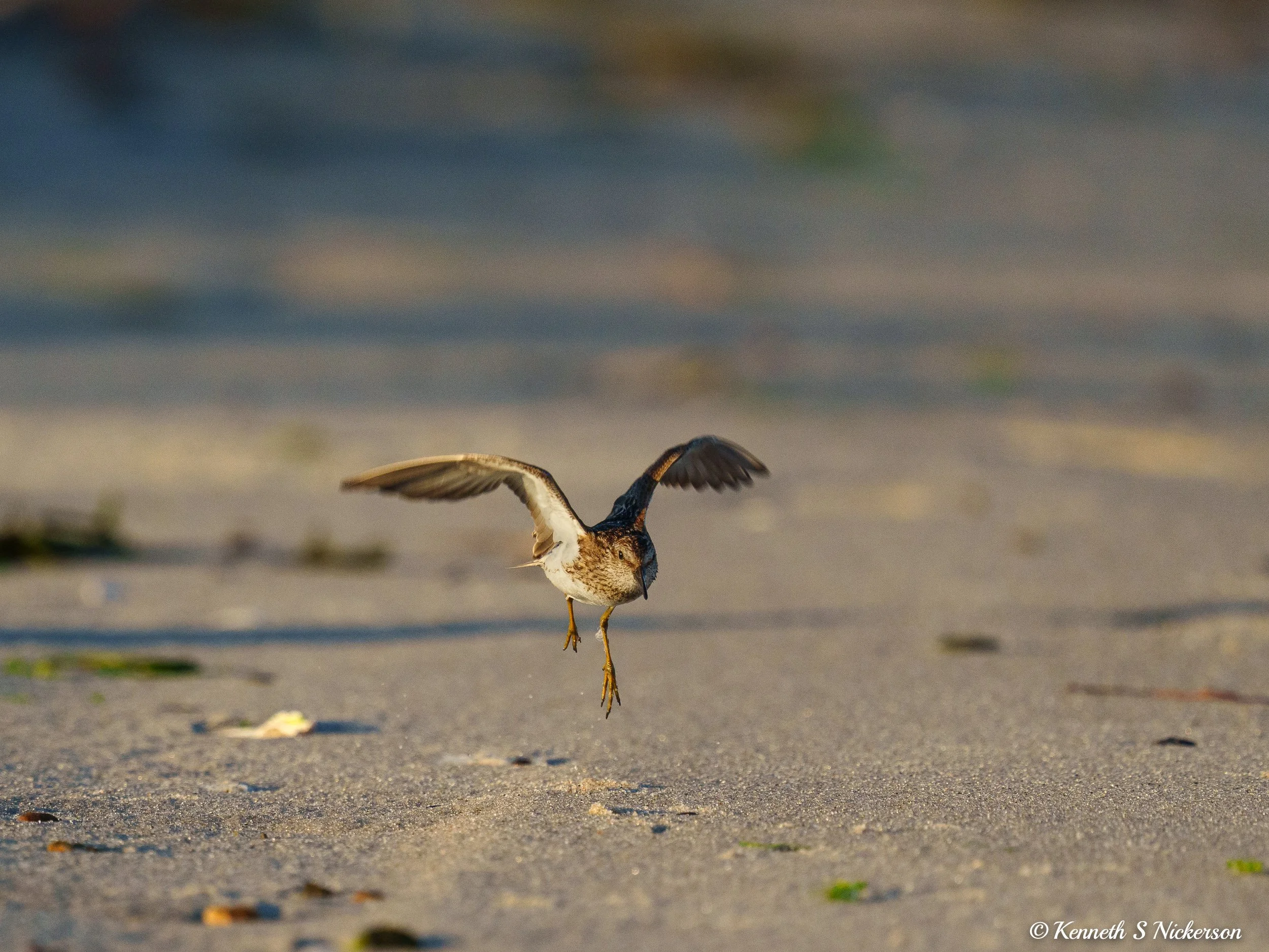 In contrast, this Least Sandpiper decided that it had place to go and things to see. This image makes me think of the old videos of early airplane flight attempts, where the plane is bouncing up and down trying to get airborne. In reality, the Least Sandpiper took off smoothly towards me, and I never considered such a thought until I looked at this image.