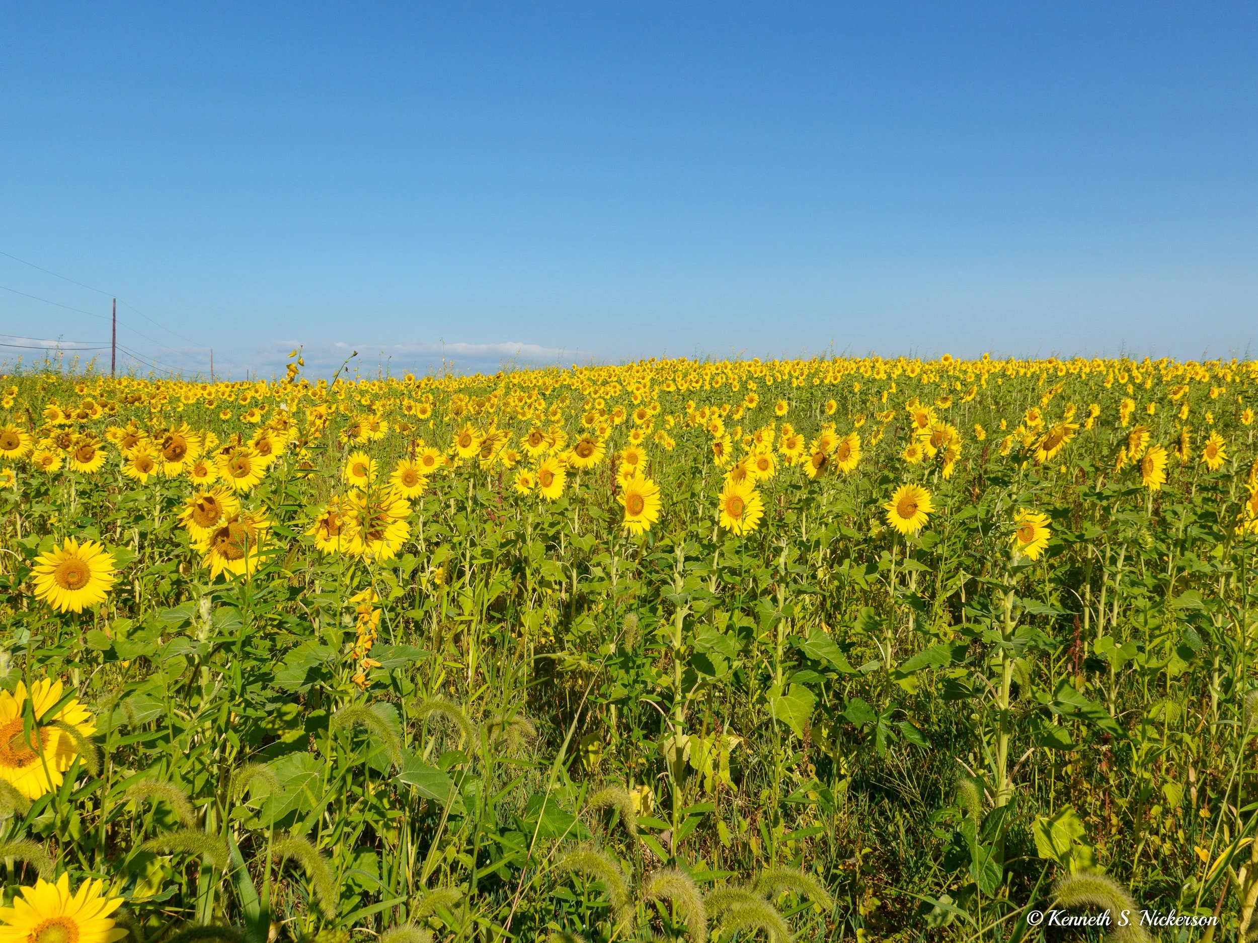 After a couple of miles cycling upstream, we crossed over the creek, and rode into a huge field of sunflowers.