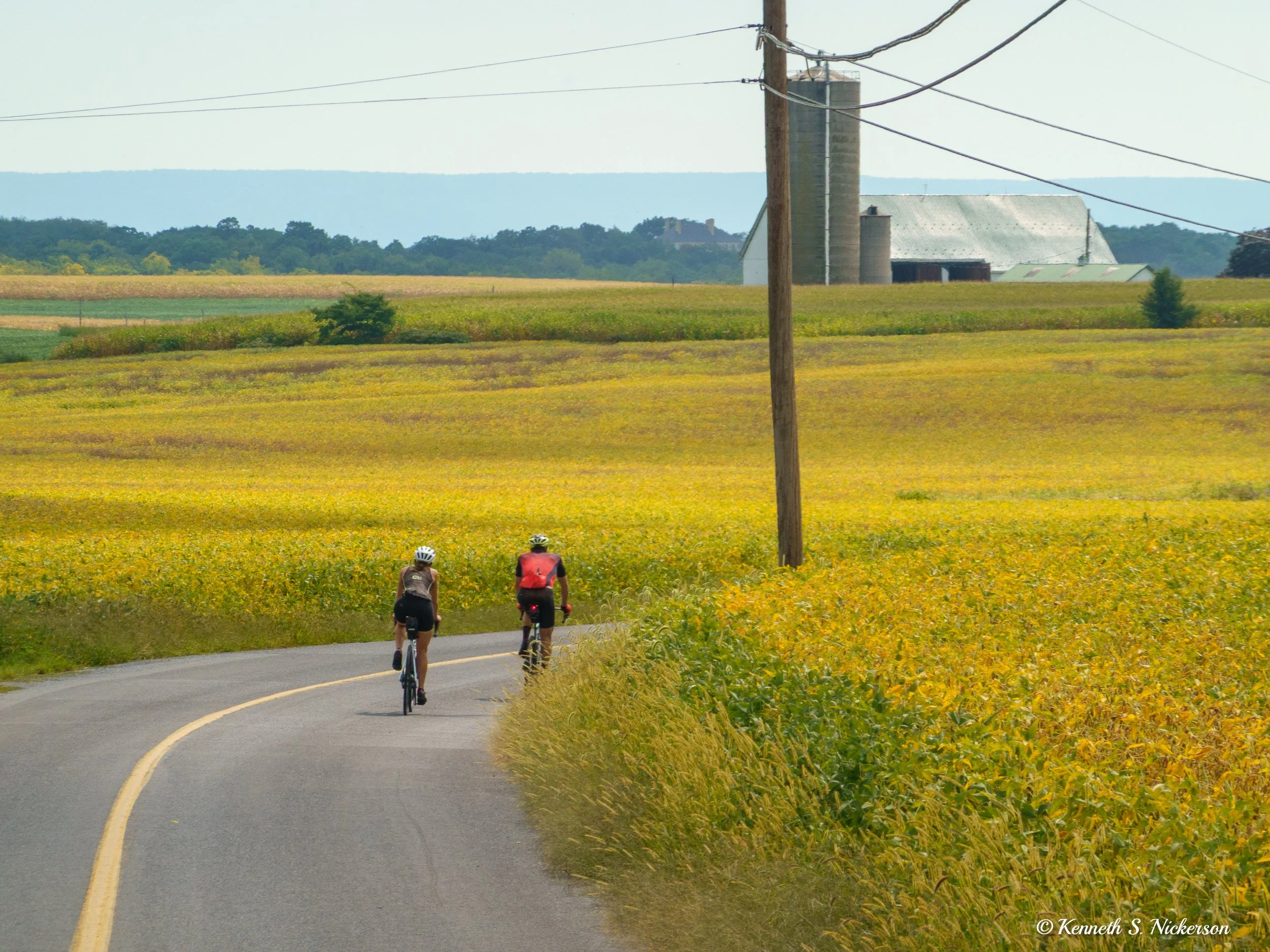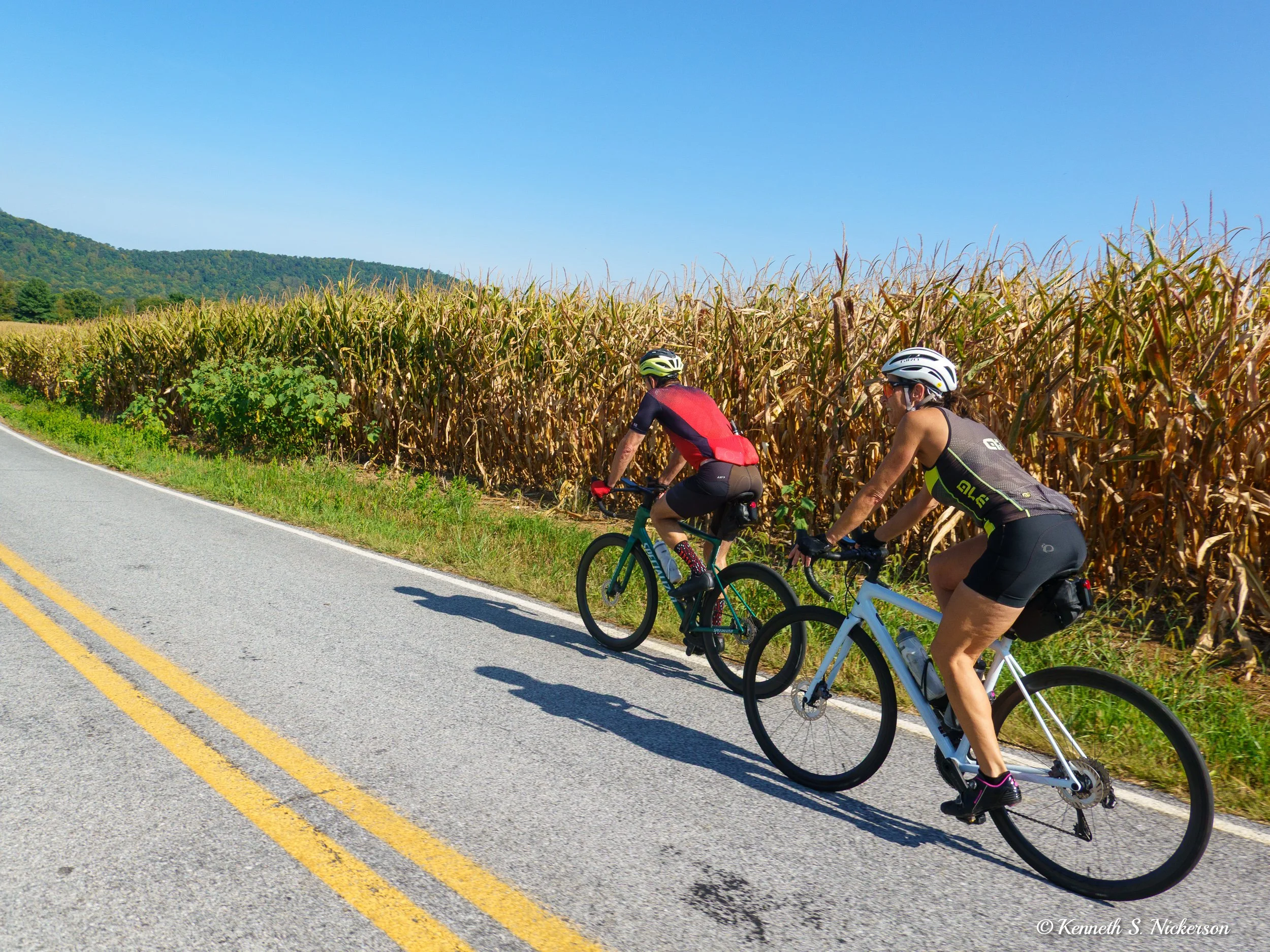 Our route had us ride north into Pennsylvania. There were hills to our left in the west, but we kept to the farmland in the valley.