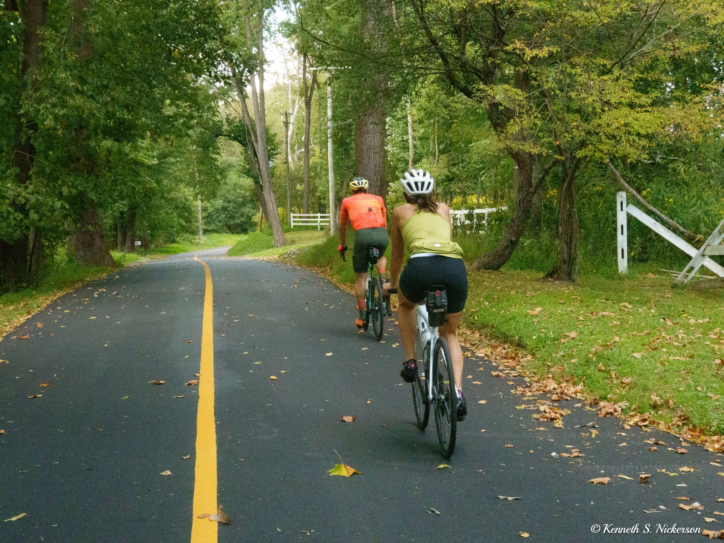 Yesterday, our first day, we drove to Bloomsbury NJ where we did one of Jesse and Ruth’s favorite rides. Our route looped through farmland and along the Delaware River. Here is the Delaware River as we headed north along the NJ side.