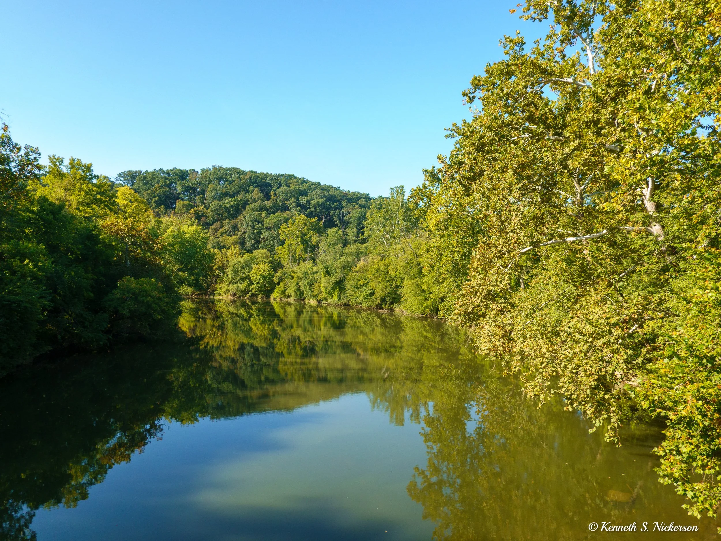 Day 2 started out with lovely weather, clear skies with temperatures in the low to mid 60s. We started by cycling along Conococheague Creek after exiting the town of Williamsport. The creek feeds into the nearby Potomac River which around here separates Maryland from West Virginia. Farther south, as the river makes its way to the Chesapeake Bay, it is the border between Maryland and Virginia.
