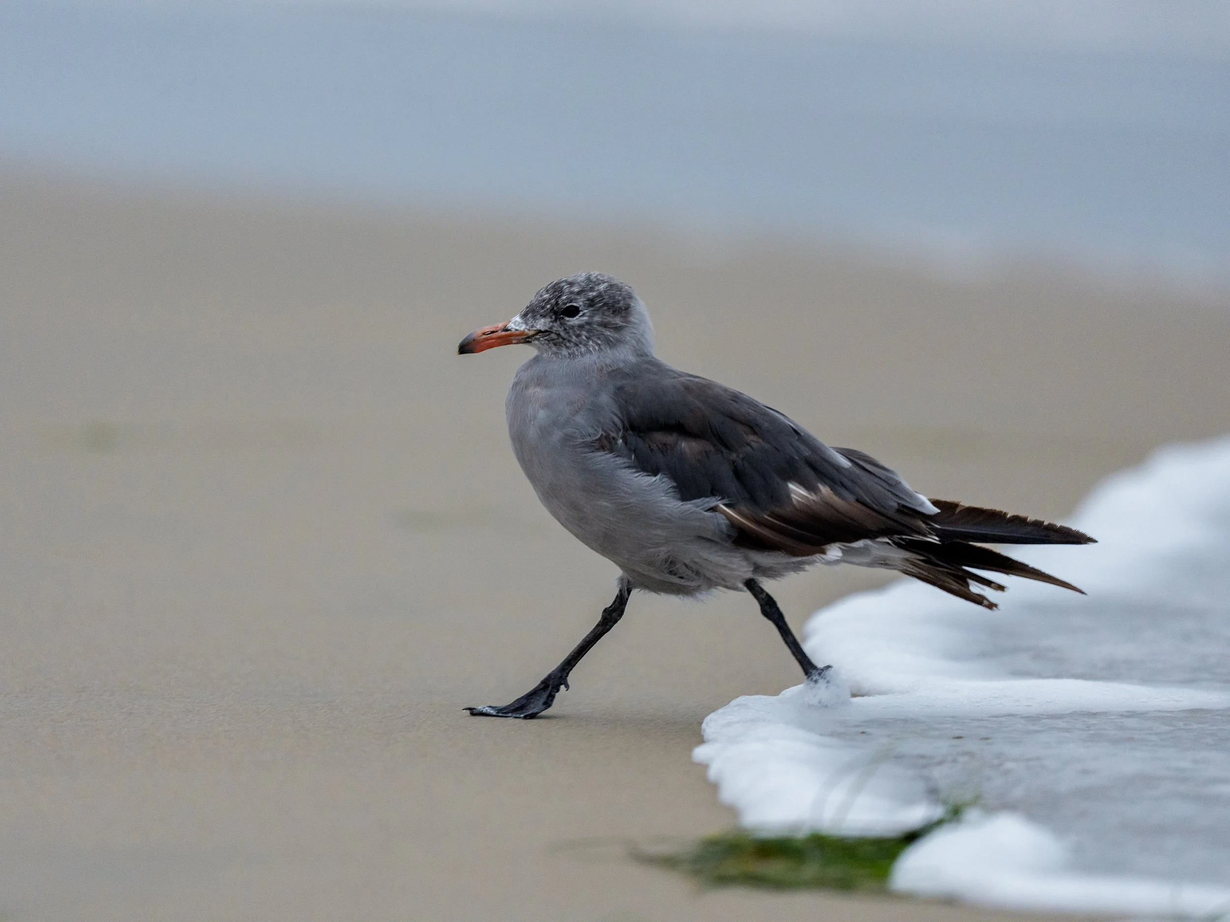 The other common gull is the Heermann’s Gull. This is quite different given its smoky gray coloring and red bill.